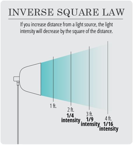 4 feet…1/16th intensity! Light. Dies. Quickly. This is why professional film lights are so huge!